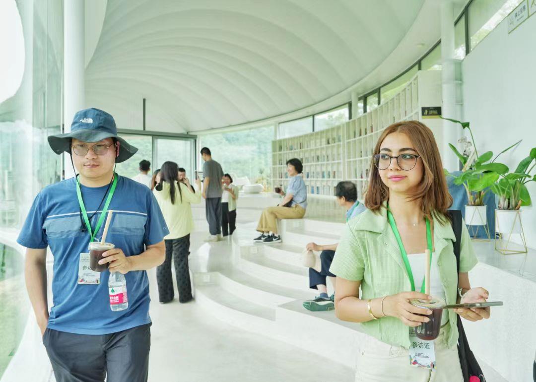 采訪團(tuán)一行先后參觀了春天里度假酒店、八樓野有院民宿、山鄉(xiāng)牧野營地、九女峰沉浸式景區(qū)等項目業(yè)態(tài),實地感受文旅融合發(fā)展助力鄉(xiāng)村振興帶來的“山鄉(xiāng)巨變”。山鄉(xiāng)牧野2號營地周圍風(fēng)景秀麗,植被豐盛,采訪團(tuán)一行走進(jìn)帳篷、天幕以及露營房車,察看露營設(shè)施,在青翠的樹林間體驗露營樂趣。在九女峰沉浸式景區(qū),采訪團(tuán)一行先后參觀了九女峰書房、“楓月無邊”“流瑩星徑”“大峽谷”等休閑體驗區(qū)以及故鄉(xiāng)的月沉浸式演出,濃厚的文化氛圍、精心的布景設(shè)計、用心的運營服務(wù),得到采訪團(tuán)高度認(rèn)可。特別是融合了多場景流動、多角色扮演、多感官體驗、多技術(shù)應(yīng)用的故鄉(xiāng)的月沉浸式演出,吸引了外媒記者的目光,大家沉醉其中、流連忘返。