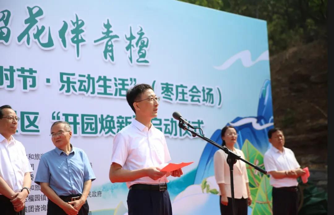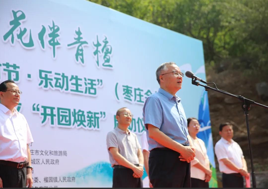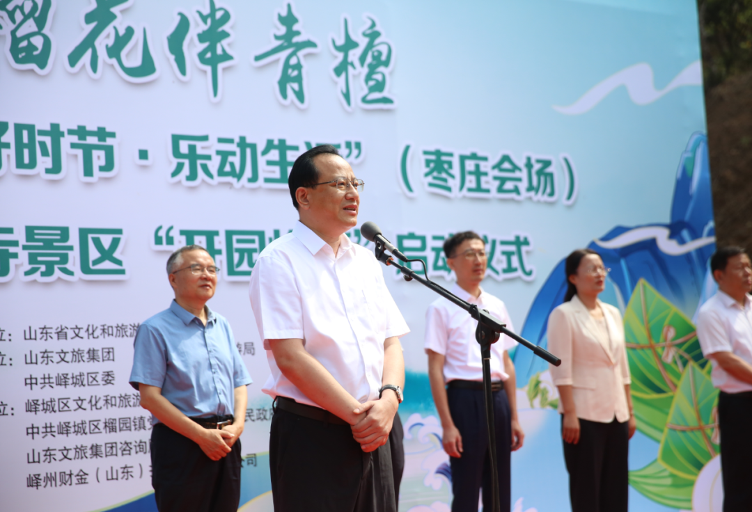 棗莊市嶧城區(qū)委書記張熙濱在致辭中說,近年來嶧城區(qū)始終堅持以文塑旅、以旅富民,特別是去年9月份以來,為全面貫徹落實習(xí)近平總書記視察嶧城重要指示要求,在省市各部門的支持下,嶧城區(qū)與山東文旅集團(tuán)順利開展全面合作。他表示,以本次活動為契機(jī),將為冠世榴園景區(qū)發(fā)展揭開嶄新的篇章,有利于嶧城區(qū)進(jìn)一步提振文旅消費(fèi),推動文旅賦能鄉(xiāng)村全面振興。