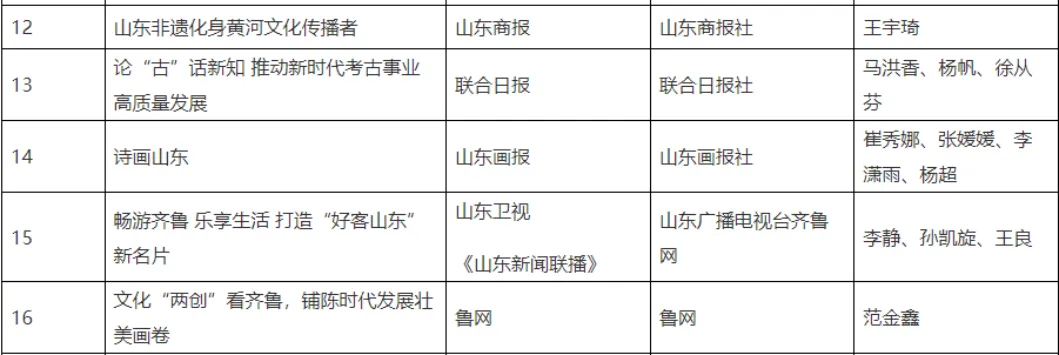 山東文旅傳媒集團共有4個作品入選推介作品名單。其中,山東商報提交的作品《山東非遺化身黃河文化傳播者》和魯網(wǎng)提交的《文化“兩創(chuàng)”看齊魯,鋪陳時代發(fā)展壯美畫卷》入選“2023年度文化和旅游好新聞“重點推介作品;山東商報的作品《“古國神游”系列報道》、魯網(wǎng)的作品《走黃河文化體驗廊道,打卡山東“活力”地標》組圖入選“2023年度文化和旅游好策劃”重點推介作品。