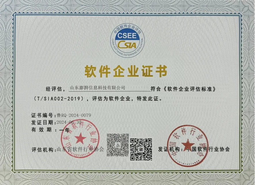 近日,文旅科技公司權(quán)屬單位山東澎湃信息科技有限公司(簡稱“澎湃科技公司”)喜訊不斷。繼入選山東省2024年度專精特新中小企業(yè)后,經(jīng)山東省信息產(chǎn)業(yè)協(xié)會評估審核,澎湃科技公司于2024年6月順利通過軟件企業(yè)認證和軟件產(chǎn)品認證,正式成為“雙軟認證”企業(yè)。