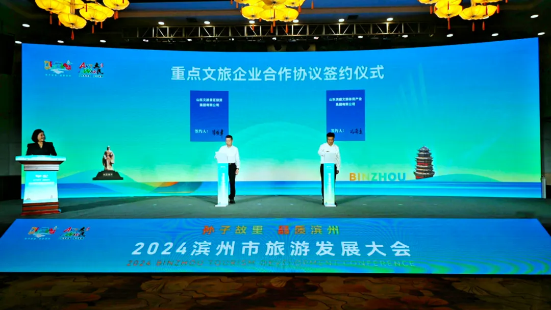 大會現(xiàn)場,舉辦了重點項目推介及簽約活動,山東文旅景區(qū)集團與山東濱盛文旅體育產(chǎn)業(yè)集團簽訂戰(zhàn)略協(xié)議,標志著雙方在文化旅游領(lǐng)域的深度合作已步入全新階段,共同邁向了互利共贏、協(xié)同發(fā)展的新時代,攜手共創(chuàng)合作發(fā)展的新篇章。