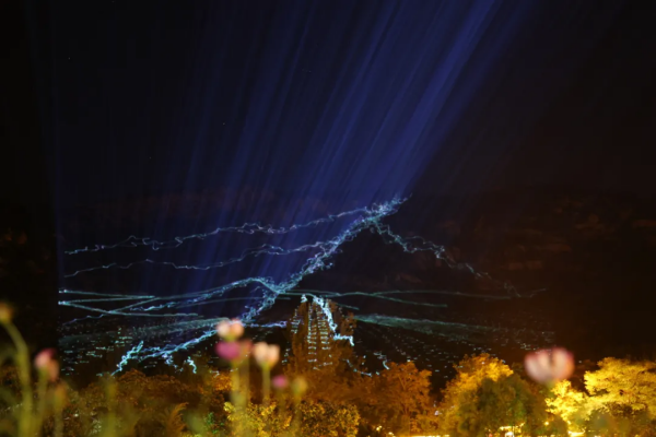 “大美天蒙,沂蒙天境”沉浸式山體光影秀,利用虛擬成像技術(shù)、激光3D成像技術(shù),為游客演繹全息投影《高山流水》、山體光影激光秀、3D 激光投影秀,實現(xiàn)“科技+文旅”融合高質(zhì)量發(fā)展,達到自然之美與藝術(shù)人文的契合。螢火蟲、蒲公英、蝴蝶等造型燈光烘托童趣氛圍,創(chuàng)造豐富的視覺效果。2024年暑期天蒙景區(qū)夜游產(chǎn)品通過“夜游光影+互動裝置+網(wǎng)紅打卡”的演繹,為游客帶來視覺盛宴使人流連忘返。