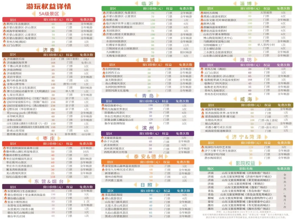 “好客山東一碼通”旅游年卡是由山東文旅集團旗下文旅云公司主導(dǎo)建設(shè)運營的惠民文旅年卡產(chǎn)品,此次推出的2.0升級版,在售價不變的基礎(chǔ)上,新增近40家優(yōu)質(zhì)景區(qū)及生活消費場景,景區(qū)總數(shù)突破至120家,產(chǎn)品覆蓋山東全省7家5A級景區(qū)、50余家4A級景區(qū),更有高爾夫球場、溫泉度假村、滑雪場、親子樂園、豪華影院等眾多高端休閑娛樂資源,總價值超萬元,全方位滿足游客多元化、高品質(zhì)的出游需求。