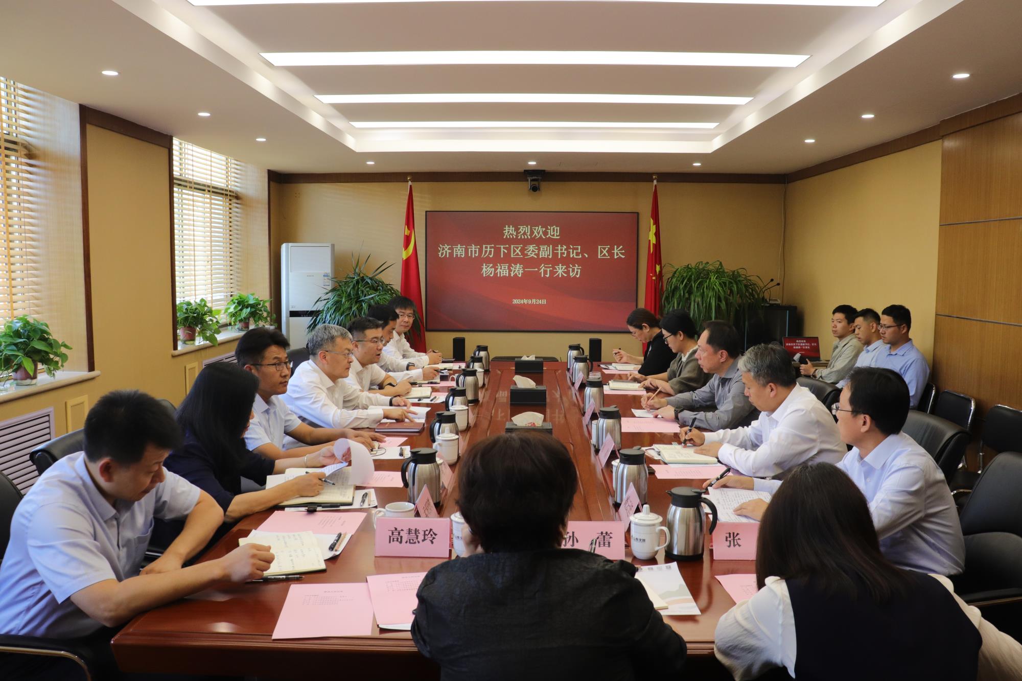 9月24日,濟(jì)南市歷下區(qū)委副書記、區(qū)長(zhǎng)楊福濤率隊(duì)到訪山東文旅集團(tuán),集團(tuán)黨委書記、董事長(zhǎng)丁藝會(huì)見。