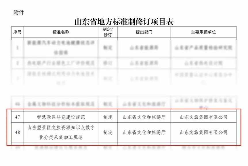 為落實(shí)《山東省人民政府關(guān)于貫徹<國(guó)家標(biāo)準(zhǔn)化發(fā)展綱要>推進(jìn)標(biāo)準(zhǔn)化創(chuàng)新發(fā)展的實(shí)施意見》的部署,基于國(guó)家級(jí)及省級(jí)課題《復(fù)雜山岳景區(qū)游客全域位置感知與精準(zhǔn)服務(wù)應(yīng)用示范》的核心研究成果,由山東省文化和旅游廳指導(dǎo),山東文旅集團(tuán)聯(lián)合山東大學(xué)分別與中國(guó)科學(xué)院地理科學(xué)與資源研究所、聯(lián)通(山東)產(chǎn)業(yè)互聯(lián)網(wǎng)有限公司共同起草了《山岳型景區(qū)文旅資源知識(shí)點(diǎn)數(shù)字化分類采集加工規(guī)范》和《智慧景區(qū)導(dǎo)覽建設(shè)規(guī)范》省地方標(biāo)準(zhǔn),為研究“山岳型景區(qū)精準(zhǔn)服務(wù)”和“智慧景區(qū)導(dǎo)覽建設(shè)”提供了標(biāo)準(zhǔn)范本,同時(shí)也是我省在文化和旅游領(lǐng)域關(guān)鍵技術(shù)標(biāo)準(zhǔn)化工作方面的重要突破。