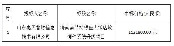 濟南索菲特銀座大飯店軟硬件系統(tǒng)升級項目中標結(jié)果公示